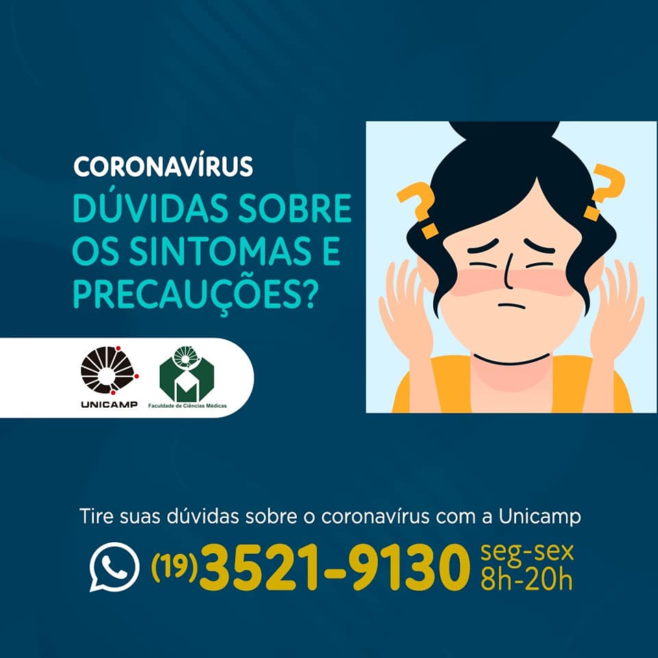 Os alunos do curso de Medicina da Faculdade de Ciências Médicas (FCM) e de Enfermagem, ambos da Unicamp, iniciaram essa semana um atendimento para orientação por telefone de dúvidas da população em relação a pandemia de Coronavirus. O atendimento é de segunda a sexta-feira, das 8 às 20 horas, pelo telefone (19) 3521-9130.